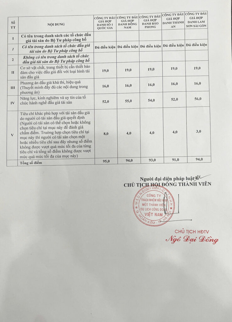 THÔNG BÁO KẾT QUẢ LỰA CHỌN TỔ CHỨC HÀNH NGHỀ ĐẤU GIÁ TÀI SẢN